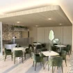 We are seeing a departure from “tech-minimalist” greys toward “Dopamine Decor” and earthy grounding tones. Commercial interior design trends 2026 favor terracotta, deep moss, and warm ochre to evoke emotional safety and optimism. These hues engage the user psychologically, encouraging connection and relaxation rather than clinical detachment.