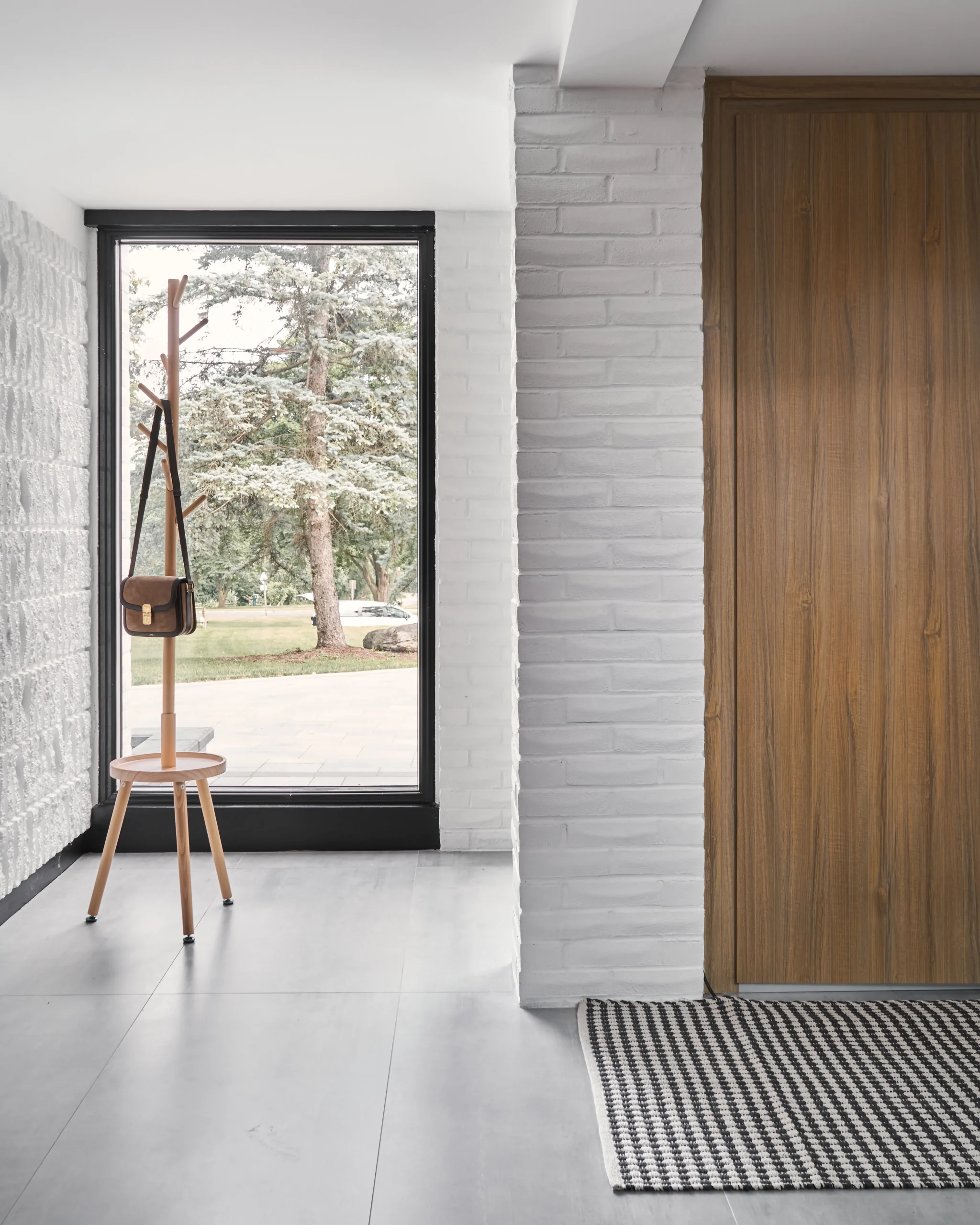 The double-height brick wall painted in crisp white stands out most. It celebrates the home’s architectural character while transforming a heavy material into something light, sculptural, and calming.